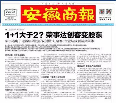 安徽都市報第一品牌《新安晚報》頭版報道榮事達:“雙創(chuàng )”助力榮事達“王者歸來(lái)” |