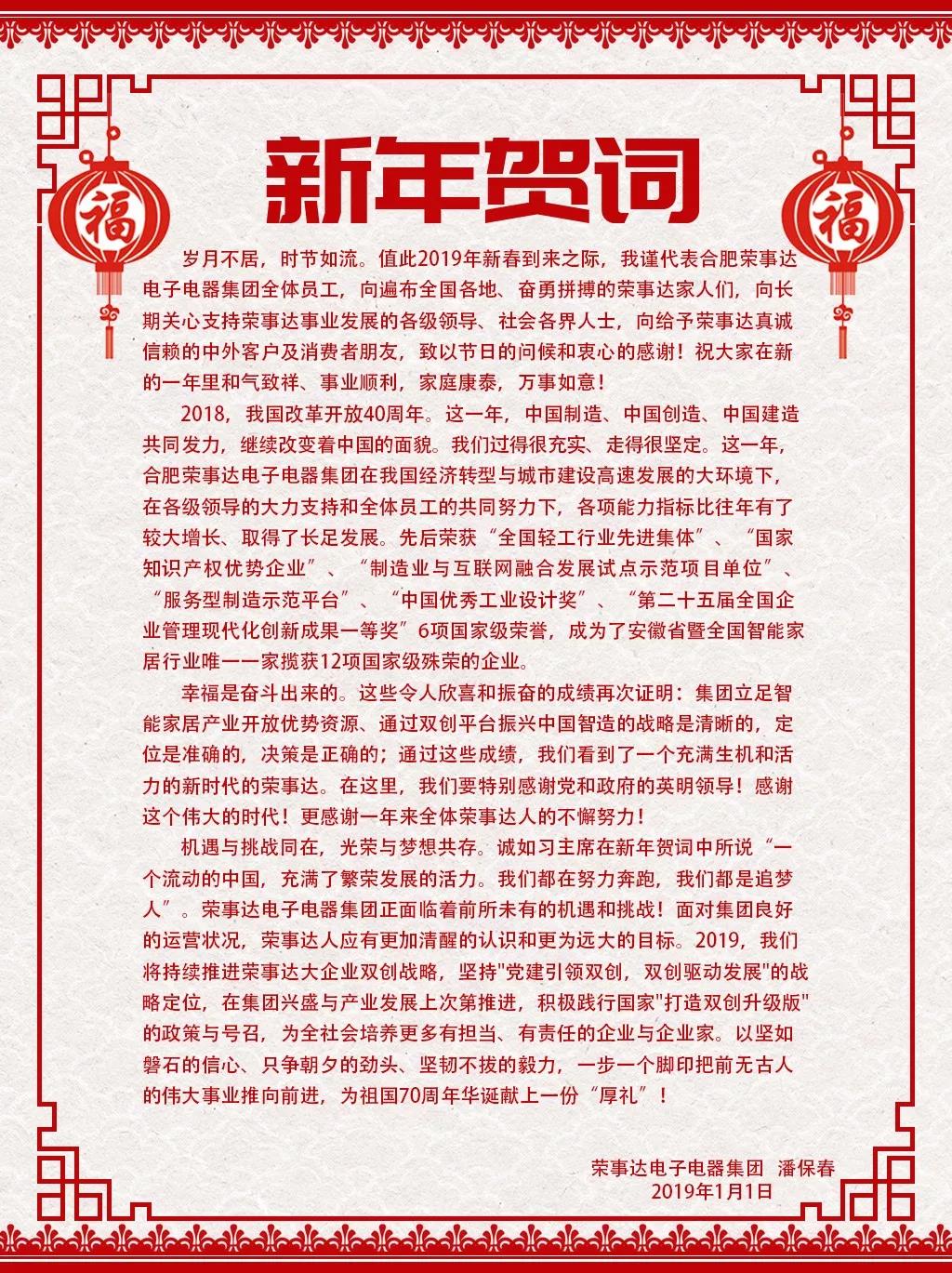 | 2019年1月9日,榮事達電子電器集團宣布全面深化和中國電信合作關(guān)系,并與中國電信安徽公司簽署深度戰略合作協(xié)議。榮事達電子電器集團董事長(cháng)潘保春、中國電信安徽公司總經(jīng)理唐珂等領(lǐng)導出席簽約儀式。簽約儀式現場(chǎng)榮事達電子電器集團副總裁張會(huì )軍與中國電信安徽公司副總經(jīng)理鄭家升簽訂戰略合作協(xié)議簽約儀式上,榮事達電子電器集團董事長(cháng)潘保... |