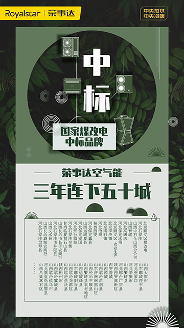 10月,榮事達空氣能一舉拿下山西平順“煤改電”二期項目,清潔取暖再創(chuàng )佳績(jì)!據悉,2019年初至今,榮事達在空氣能“煤改電”領(lǐng)域持續發(fā)力,先后斬獲河北、山東、山西、陜西、甘肅等省市28個(gè)"煤改電"項目。