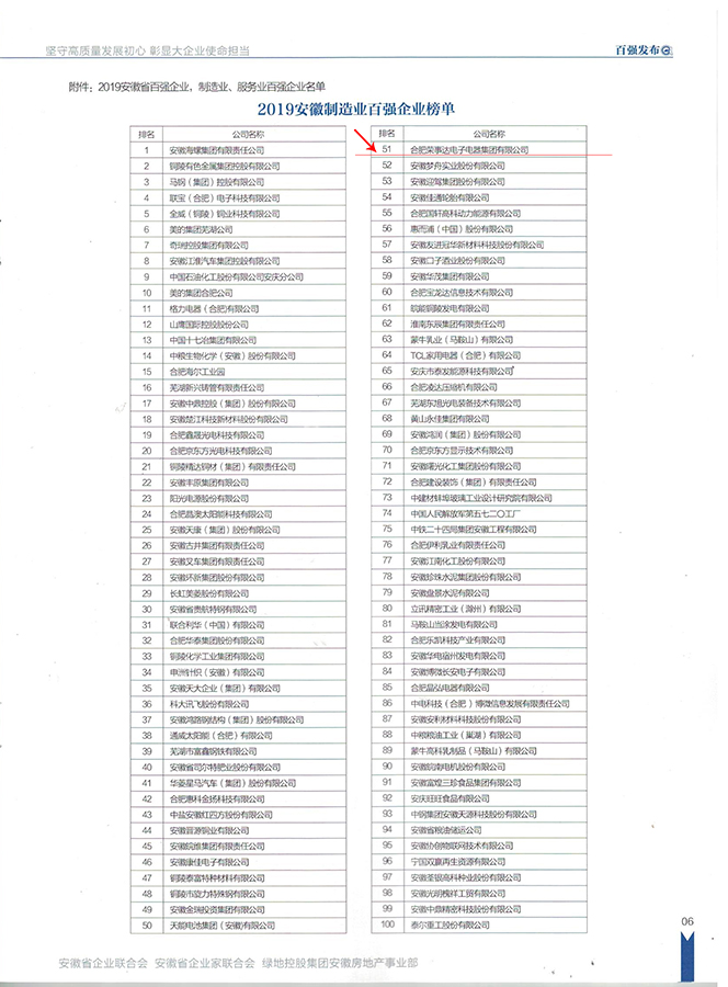 ↑↑↑榮事達榮登“2019安徽制造業(yè)百強企業(yè)”榜單
