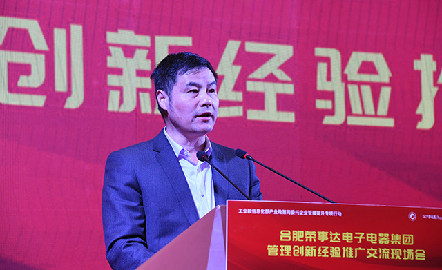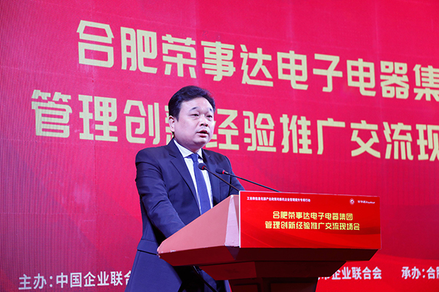 隨后,合肥市政府副秘書(shū)長(cháng)劉永龍致辭,他說(shuō):合肥堅持工業(yè)立市、制造強市戰略,正在奮力打造具有國際影響力的創(chuàng )新之都,以榮事達電子電器集團為代表的傳統產(chǎn)業(yè)持續領(lǐng)跑經(jīng)濟發(fā)展。管理創(chuàng )新是實(shí)現經(jīng)濟高質(zhì)量發(fā)展的保證,榮事達作為我市優(yōu)秀代表,始終堅持管理創(chuàng )新與機制創(chuàng )新,取得了豐碩成果,此次中國企業(yè)聯(lián)合會(huì )在合肥召開(kāi)榮事達管理創(chuàng )新經(jīng)驗推廣交流現場(chǎng)會(huì ),既是對我們的高度肯定,也為大家提供了學(xué)習機會(huì )。長(cháng)三角一體化讓合肥發(fā)展站在了新起點(diǎn),真誠地歡迎大家在這片創(chuàng )新創(chuàng )業(yè)的熱土上大有作為,為合肥發(fā)展注入新動(dòng)能。