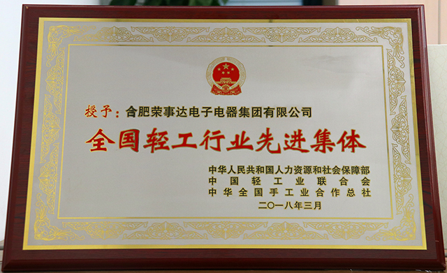 2018年3月,合肥榮事達電子電器集團有限公司被人社部、中國輕工業(yè)聯(lián)合會(huì )、及中華全國手工業(yè)合作總社聯(lián)合評為“全國輕工行業(yè)先進(jìn)集體”。