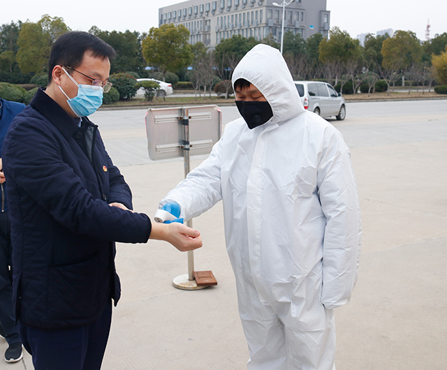 工作人員為共青團安徽省委黨組書(shū)記、書(shū)記孔濤測量體溫