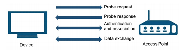 Wi-Fi網(wǎng)絡(luò )是基于IEEE802.11標準的本地無(wú)線(xiàn)網(wǎng)絡(luò )(WLAN),信號通過(guò)2、4和5GHz之間的頻率傳輸。帶有Wi-Fi模塊的設備通過(guò)接入點(diǎn)相互連接。設備向接入點(diǎn)發(fā)送訪(fǎng)問(wèn)請求的信號,并且只有在認證和關(guān)聯(lián)過(guò)程之后才允許數據傳輸。
