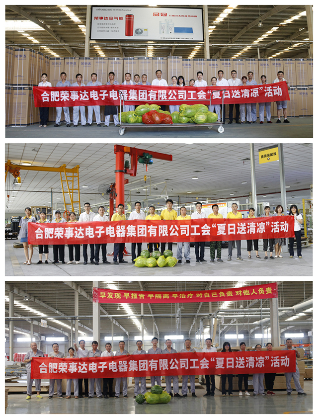 榮事達電子電器集團工會(huì )對大家的辛勤付出表示感謝,叮囑他們要重視夏季高溫防暑工作,合理安排作息時(shí)間。