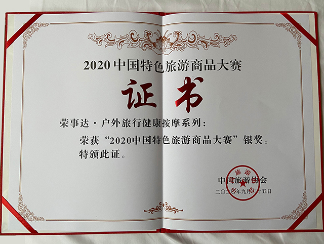 2020年9月25日-28日,中國旅游協(xié)會(huì )、四川省文化和旅游廳、樂(lè )山市人民政府舉辦2020中國特色旅游商品大賽,此次活動(dòng)以樹(shù)立中國特色旅游商品品牌,促進(jìn)全國旅游商品創(chuàng )新,推動(dòng)全國各省區市旅游商品快速發(fā)展,擴大旅游購物消費為宗旨。合肥榮事達電子電器集團有限公司戶(hù)外旅游健康按摩系列產(chǎn)品,憑借自主品牌精品,且具有市場(chǎng)性、實(shí)用性、創(chuàng )新性等突出特質(zhì),斬獲大賽銀獎。