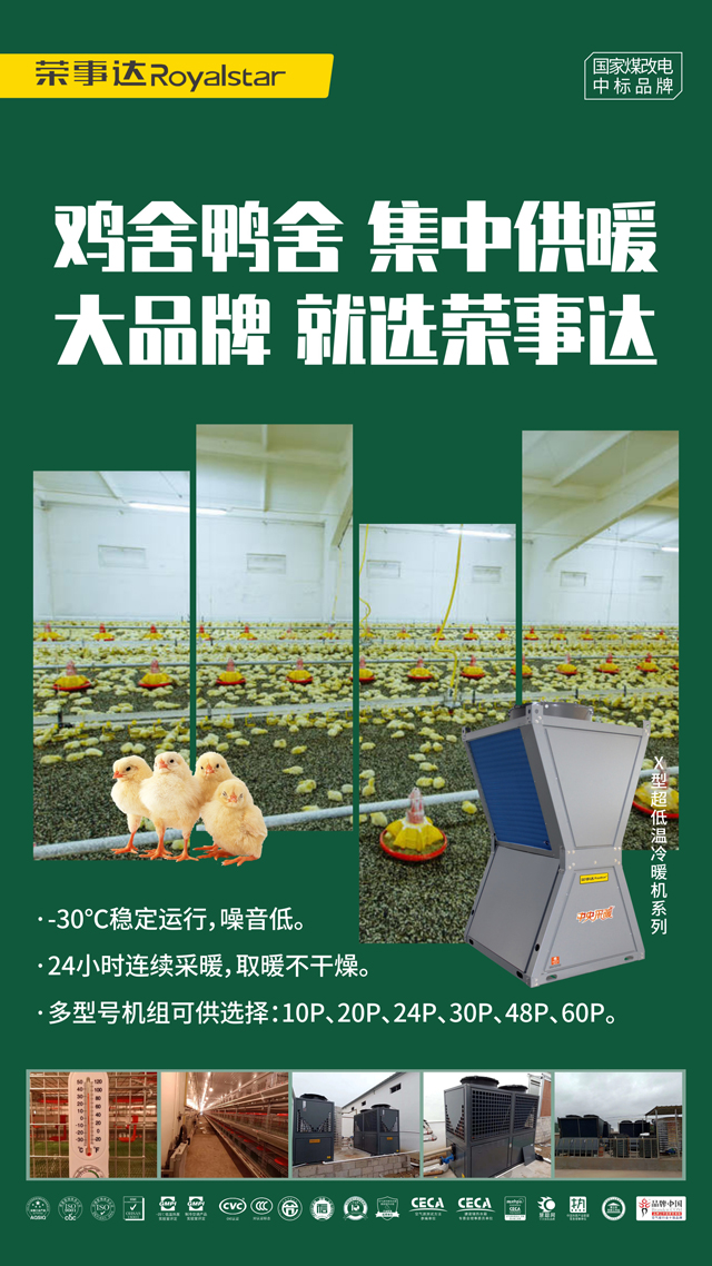 養雞場(chǎng)用空氣能取暖效果好嗎?從雞舍供暖的要求來(lái)看,空氣能熱泵取暖設備是適合雞場(chǎng)使用的。榮事達作為國內較早涉足空氣能熱泵領(lǐng)域的品牌之一,目前已打造了大量的畜牧養殖采暖項目,研發(fā)出的系列養殖專(zhuān)用空氣能熱泵機組——低環(huán)境高溫熱泵供暖設備、雞舍豬舍專(zhuān)用空氣能供暖設備,結合榮事達空氣能項目團隊專(zhuān)業(yè)的采暖系統設計,涵蓋養豬場(chǎng)、養雞場(chǎng)、養鴨場(chǎng)、養鵝場(chǎng)等等,大大提高了養殖戶(hù)經(jīng)濟效益,贏(yíng)得了市場(chǎng)的廣泛贊譽(yù)。