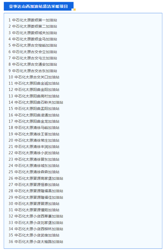 榮事達空氣能服務(wù)山西地區36個(gè)加油站清潔取暖項目!