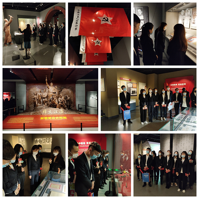 現場(chǎng),集團共青團員們一同參觀(guān)了“烽火江淮——安徽革命史陳列”展覽。該展以近代安徽地區新民主主義革命歷程為線(xiàn)索,分為“革命賡續 安徽建黨”、“紅色沃土 紅軍搖籃”、“華中砥柱 鐵軍戰歌”、“江淮鏖兵 革命勝利”四個(gè)部分,全面呈現近代安徽人民的革命歷程。