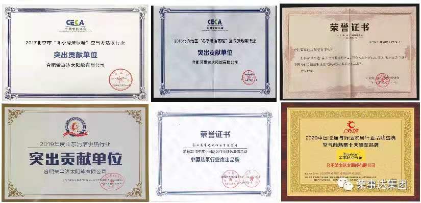 榮事達空氣能系列行業(yè)榮譽(yù)