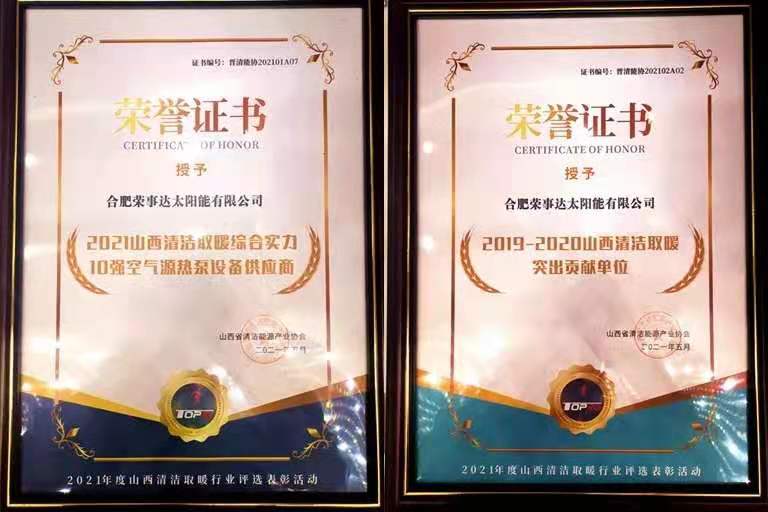 5月14-15日,2021山西清潔取暖技術(shù)與市場(chǎng)高質(zhì)量發(fā)展大會(huì )在太原舉行,榮事達空氣能受邀出席,榮獲“2021山西清潔取暖綜合實(shí)力10強空氣源熱泵設備供應商”和“2019-2020山西清潔取暖突出貢獻單位”雙項榮譽(yù)。