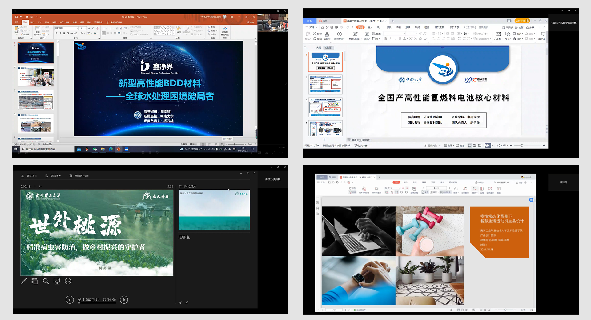 活動(dòng)現場(chǎng),來(lái)自各大高校的創(chuàng )業(yè)項目團隊對各自的研究項目進(jìn)行了全面闡述。他們的研究主題包括:“疫情常態(tài)下智能運動(dòng)衍生產(chǎn)品設計”“新型高性能BDD電極材料——全球水處理困境破局者”“全國產(chǎn)高性能氫燃料電池核心材料”“世外桃源——精準病蟲(chóng)害防治,做鄉村振興的守護者”“高功率激光光閘—先進(jìn)激光制造高效化核心”等。