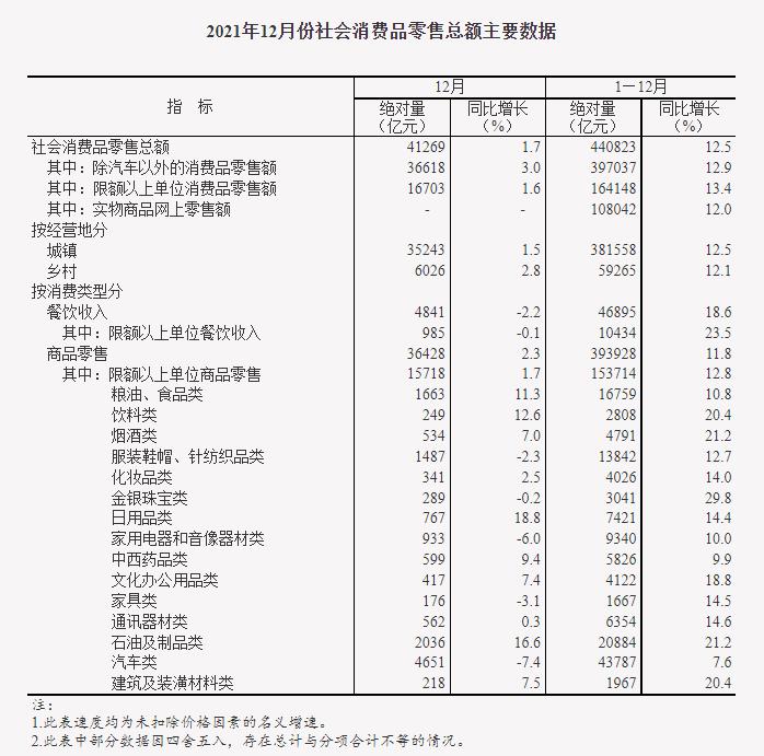 宏觀(guān)方面,據國家統計局數據顯示,2021年,我國國內生產(chǎn)總值比上年增長(cháng)8.1%,經(jīng)濟增速在全球主要經(jīng)濟體中名列前茅;其中社會(huì )消費品零售總額44.1萬(wàn)億元,比上年增長(cháng)12.5%,比2019年增長(cháng)8%。