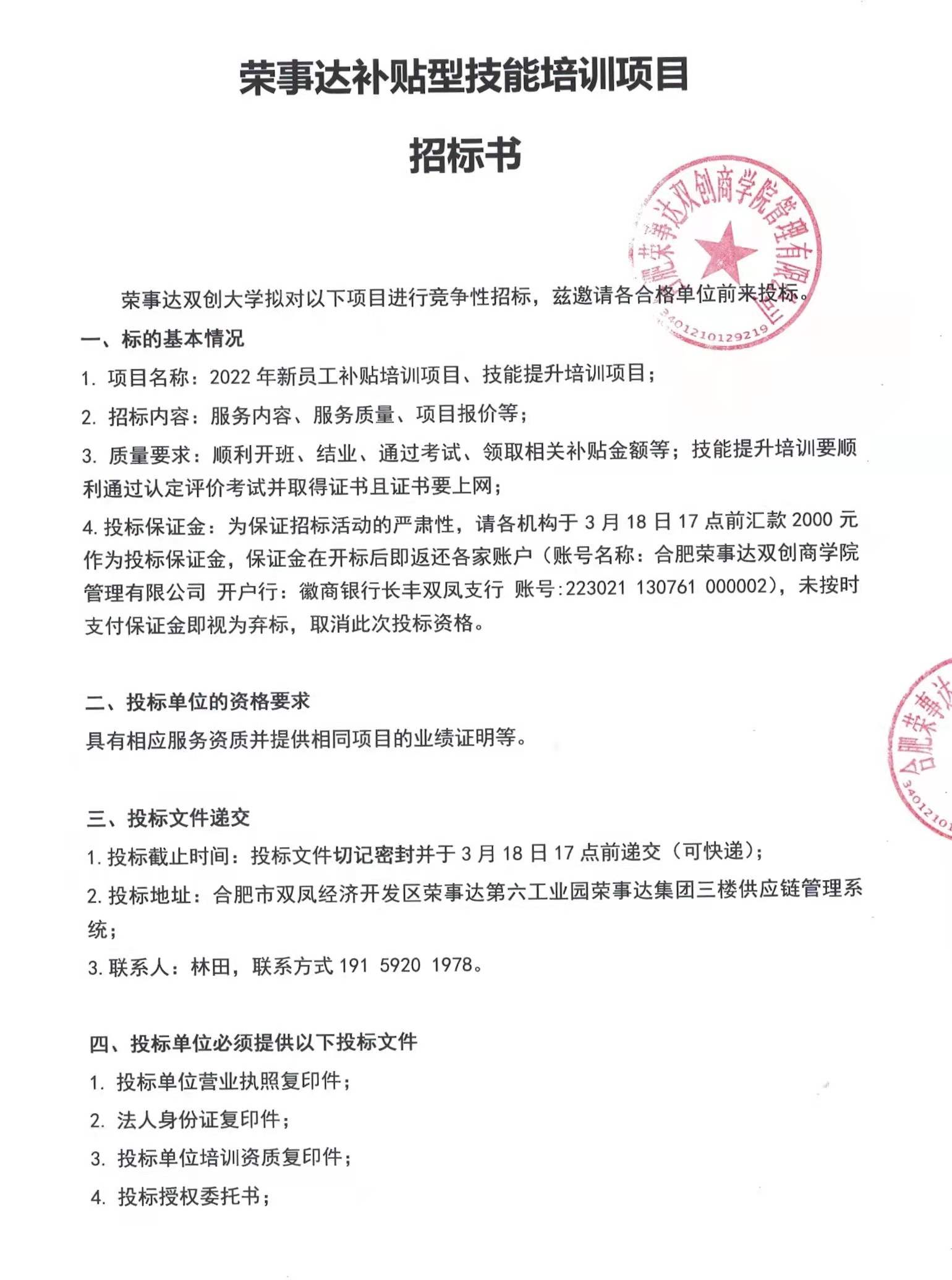 2022—2023年度安徽榮事達智能公路干線(xiàn)運輸項目招標公告
