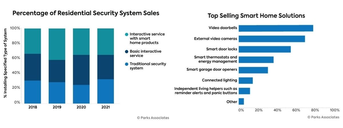 盡管受到大流行的影響,家庭安全行業(yè)在過(guò)去幾年中經(jīng)歷了有意義的增長(cháng)。 Parks Associates 對 10,000 個(gè)互聯(lián)網(wǎng)家庭的研究表明,現在 36% 的美國互聯(lián)網(wǎng)家庭擁有家庭安全系統,高于2018年的26%。