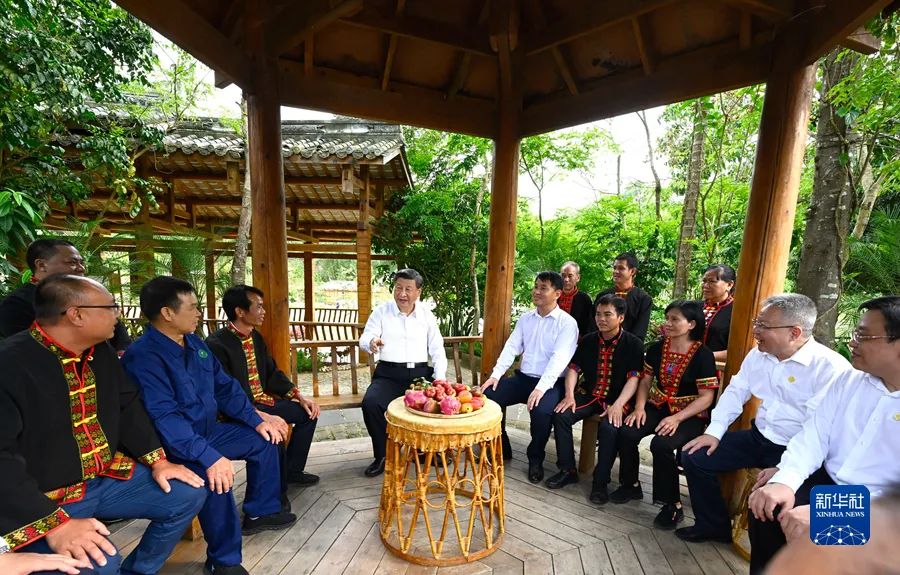 2022年4月10日至13日,習近平在海南考察。這是11日下午,習近平在五指山市水滿(mǎn)鄉毛納村,同當地干部群眾親切交談。新華社記者 李學(xué)仁 攝