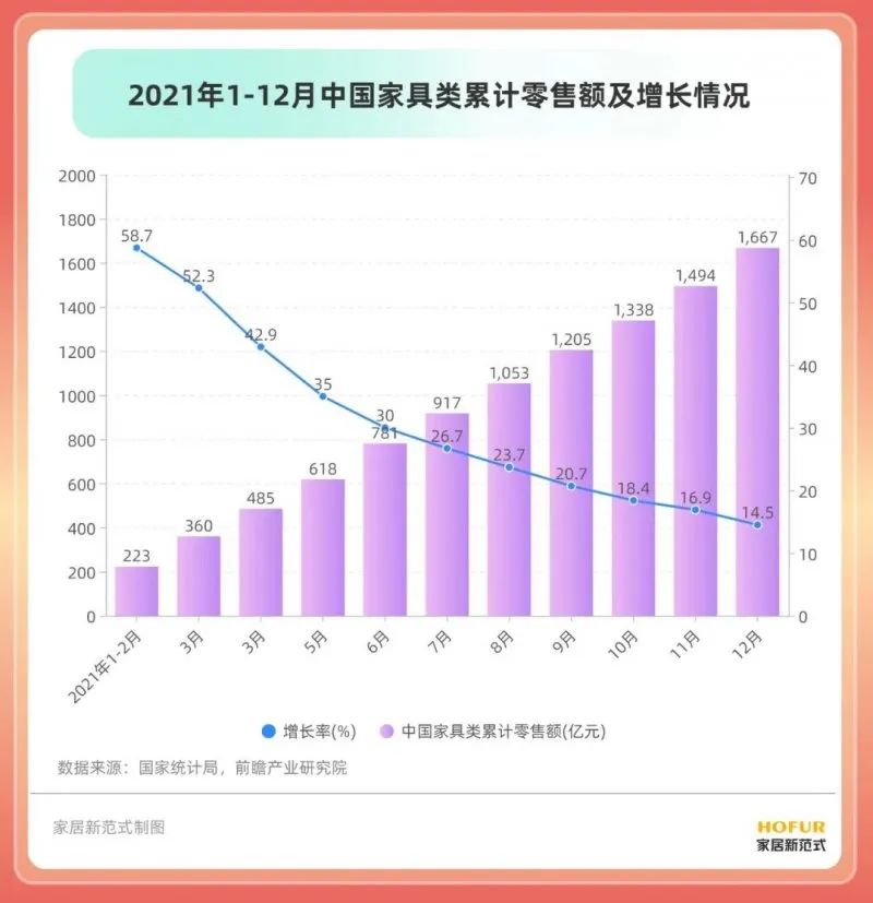 一直以來(lái),家居產(chǎn)業(yè)均有著(zhù)規模體量大、消費帶動(dòng)強和產(chǎn)業(yè)覆蓋廣等特點(diǎn),據國家統計局數據顯示,去年國內家具累計銷(xiāo)售額達到了1667億元,再加上共738億美元的家具及其零件出口總額,去年國內家具行業(yè)創(chuàng )造的產(chǎn)值接近7000億元。
