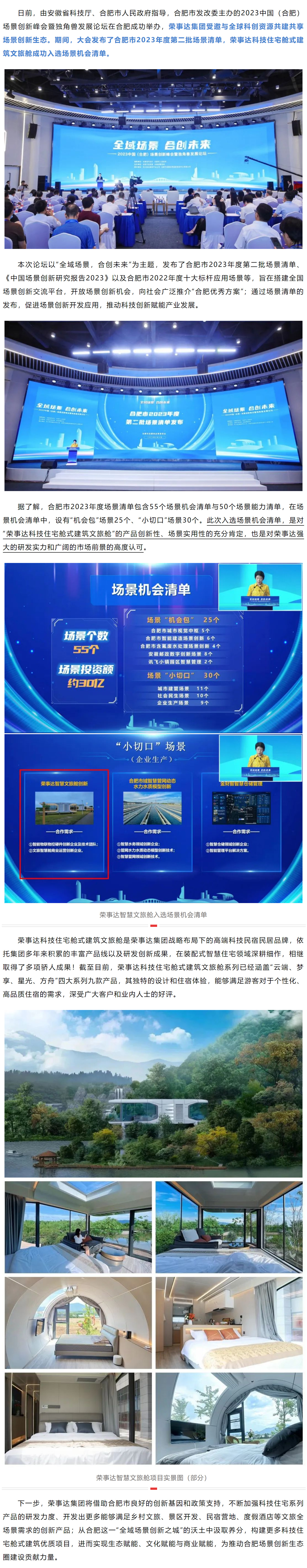 給力!榮事達智慧文旅艙入選合肥市年度場(chǎng)景清單