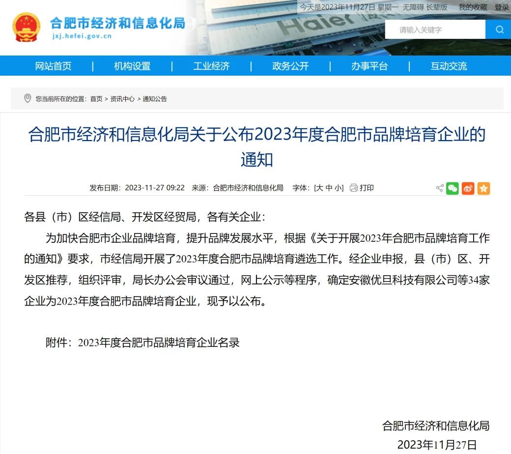 據悉,此次認定是根據《關(guān)于開(kāi)展2023年合肥市品牌培育工作的通知》要求,經(jīng)企業(yè)申報,縣(市)區、開(kāi)發(fā)區推薦,組織評審,局長(cháng)辦公會(huì )審議通過(guò),網(wǎng)上公示等程序,層層遴選而成;入選的品牌建設培育企業(yè),在品牌建設方面具有創(chuàng )新能力強、管理體系完善、效益增長(cháng)較快等特點(diǎn),特別是在品牌保障機制、品牌戰略布局等方面擁有個(gè)性化特色。