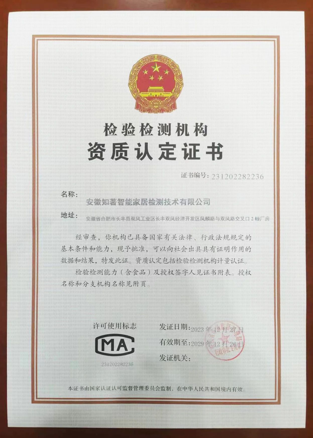 日前,榮事達集團旗下安徽知著(zhù)智能家居檢測技術(shù)有限公司,順利通過(guò)CMA資質(zhì)認證,并獲得由安徽省市場(chǎng)監督管理局頒發(fā)的檢驗檢測機構資質(zhì)認定(CMA)證書(shū),表明了其檢驗檢測資質(zhì)和能力得到了政府部門(mén)的權威認可。