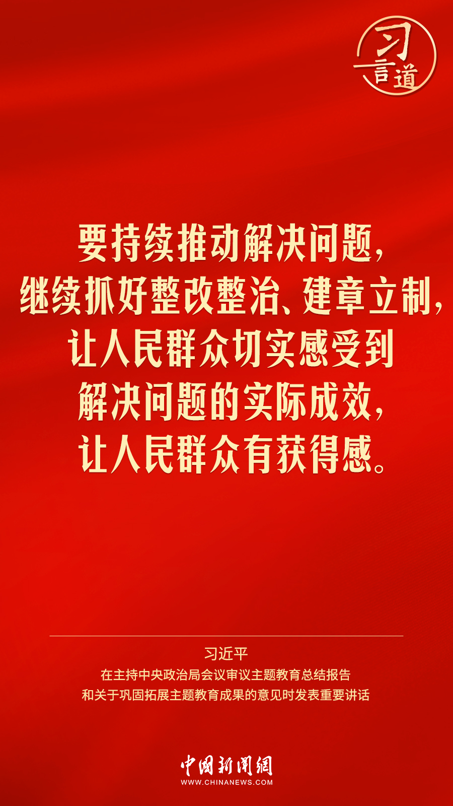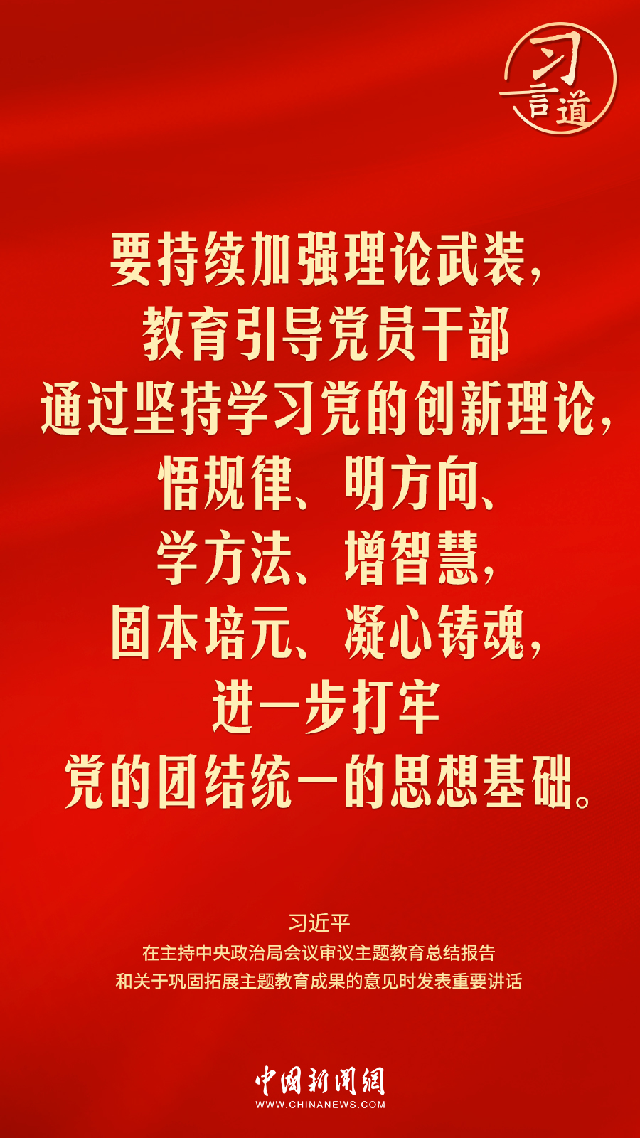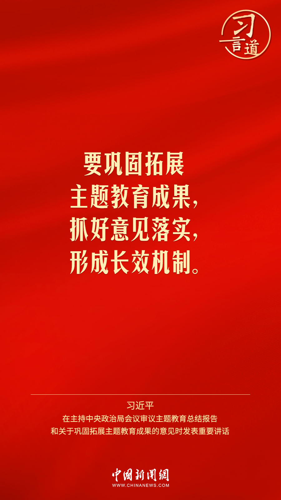 學(xué)習貫徹習近平新時(shí)代中國特色社會(huì )主義思想主題教育總結會(huì )議4日在京召開(kāi)。日前,中共中央總書(shū)記、國家主席、中央軍委主席習近平在主持中央政治局會(huì )議審議主題教育總結報告和關(guān)于鞏固拓展主題教育成果的意見(jiàn)時(shí)發(fā)表了重要講話(huà)。他強調——