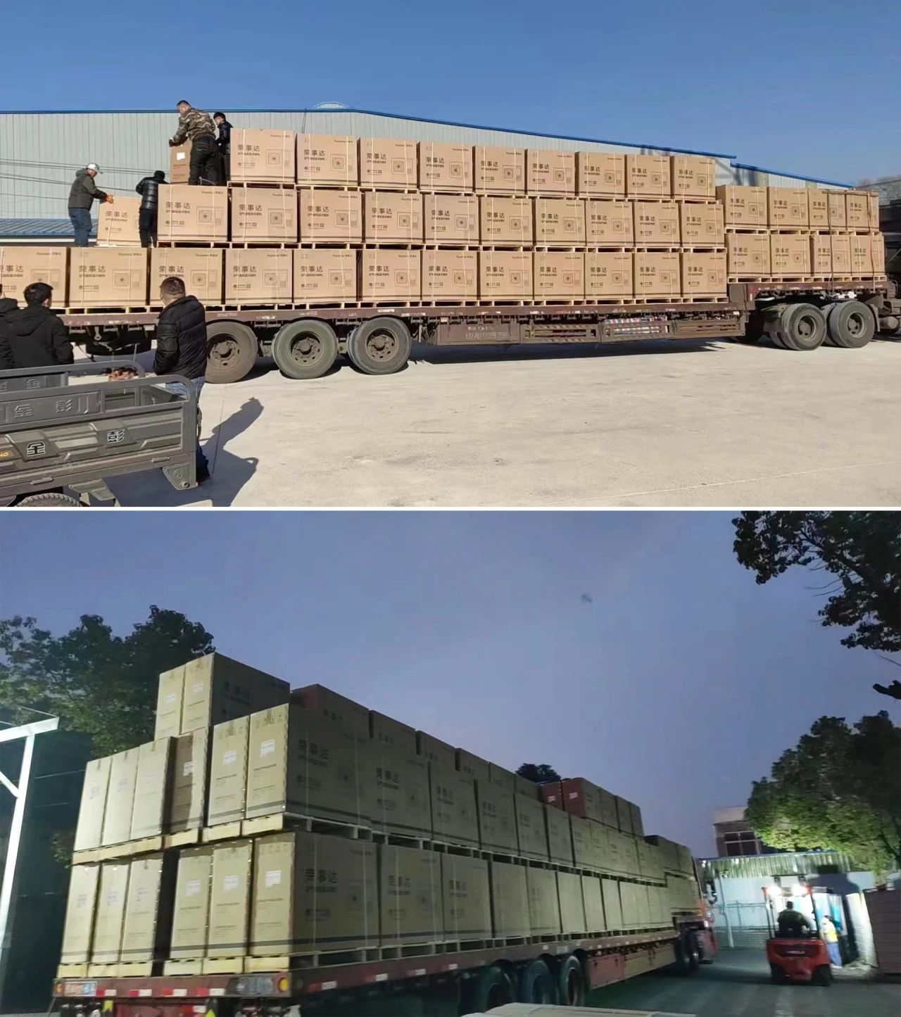今年一季度,榮事達空氣能順序排產(chǎn),鉚足干勁,全力出擊,一派火熱的生產(chǎn)場(chǎng)景成為日常景象:車(chē)間內,機器聲此起彼伏,一臺臺設備全力運轉,工人們在各自的崗位上緊張地忙碌著(zhù),開(kāi)足馬力、大干快干,爭分奪秒搶進(jìn)度趕任務(wù)!車(chē)間外,一輛輛滿(mǎn)載機組的物流車(chē)加班加點(diǎn)將采暖設備送往項目現場(chǎng)。