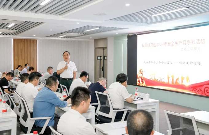會(huì )議伊始,經(jīng)開(kāi)區應急管理和生態(tài)環(huán)境中心負責人呂朝建同志在致辭中表示,此次是雙鳳經(jīng)開(kāi)區開(kāi)展的首場(chǎng)“老總講安全”安全生產(chǎn)培訓,希望通過(guò)今天的活動(dòng),廣大管理人員以及一線(xiàn)職工能夠樹(shù)立“生命至上,安全第一”的觀(guān)念,進(jìn)一步提高對安全生產(chǎn)教育工作的認識以及應急事故的處理能力,達到安全生產(chǎn)的目的。期間,呂朝建干事還從三個(gè)方面對園區安全生產(chǎn)工作進(jìn)行了指導,號召大家要以此次安全生產(chǎn)月為契機,不斷加強應急管理體制機制建設,提高應對和處置管理突發(fā)事件的能力,確保人民群眾生命財產(chǎn)安全,促進(jìn)園區安全生產(chǎn)形勢的持續穩定發(fā)展。