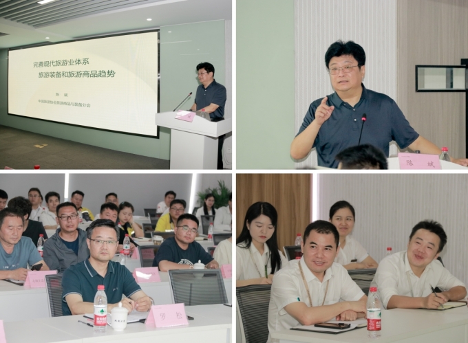 為深入理解當前旅游裝備和旅游商品市場(chǎng)的最新發(fā)展趨勢,掌握行業(yè)內的新政策、新規律和新需求,探索新產(chǎn)品的創(chuàng )意設計方向。近日,榮事達集團特邀中國旅游協(xié)會(huì )旅游商品與裝備分會(huì )專(zhuān)職副會(huì )長(cháng)兼秘書(shū)長(cháng)陳斌做“旅游裝備和旅游商品新趨勢”專(zhuān)題講座,長(cháng)豐縣文化和旅游局副局長(cháng)王少明,榮事達集團副總裁羅松,榮事達集團產(chǎn)教融合事業(yè)部副總經(jīng)理胡麗娟,合肥眾多知名景區和企業(yè)代表以及榮事達集團部分管理人員、設計研發(fā)人員參加此次講座。