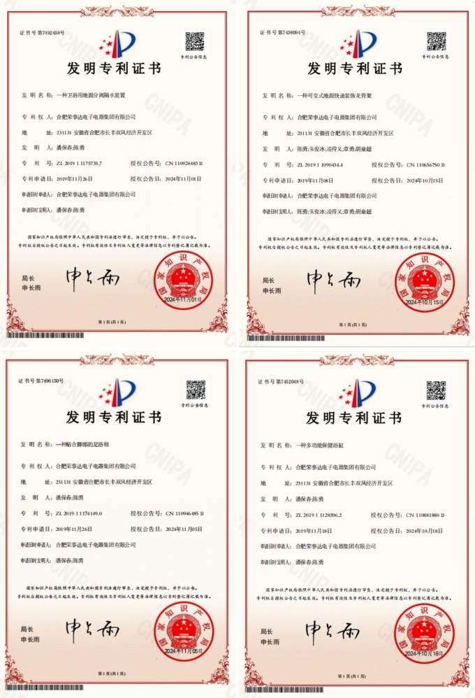 多年來(lái),榮事達集團始終聚焦科技創(chuàng )新和技術(shù)成果保護,持續強化知識產(chǎn)權策劃與布局,不斷優(yōu)化完善知識產(chǎn)權管理制度,堅持培育高價(jià)值發(fā)明專(zhuān)利,筑牢知識產(chǎn)權護城河。截至目前,榮事達集團共獲專(zhuān)利千余項,其中,智能家電領(lǐng)域涵蓋衣物護理機、智能馬桶等多種智能設備相關(guān)技術(shù);智能房屋領(lǐng)域包括智慧文旅艙框架結構和裝配式艙體等相關(guān)專(zhuān)利。專(zhuān)利授權數量與質(zhì)量持續提升,形成一批高質(zhì)量專(zhuān)利組合,推動(dòng)榮事達集團的知識產(chǎn)權優(yōu)勢轉化為產(chǎn)業(yè)競爭優(yōu)勢。