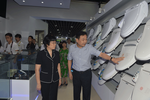 在榮事達智能馬桶蓋展廳,當了解到榮事達為全球一百多個(gè)品牌代工,并且中國智能馬桶蓋的國家標準其實(shí)是高于日本時(shí),劉莉副省長(cháng)非常欣慰,大加贊賞。同時(shí)要求潘保春董事長(cháng),在注重質(zhì)量的同時(shí),還要重視宣傳,讓國人都來(lái)買(mǎi)中國的馬桶蓋。在可自動(dòng)調節水溫、水量的智能水龍頭前,劉莉副省長(cháng)伸手試了試恰到好處的水溫、水量,感慨地說(shuō):“了不起”!