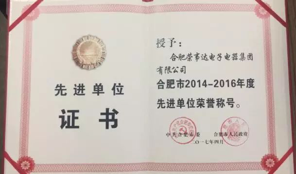 1. 近期,合肥榮事達電子電器集團被評為2014-2016年度合肥市先進(jìn)單位榮譽(yù)稱(chēng)號。