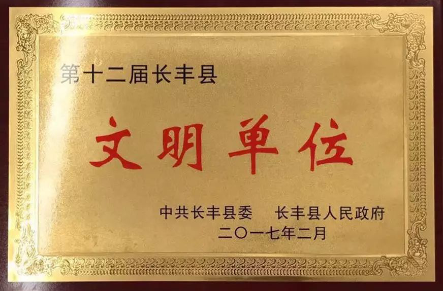 榮獲“長(cháng)豐縣文明單位”稱(chēng)號,標志著(zhù)集團的文明創(chuàng )建工作又邁上新的臺階。