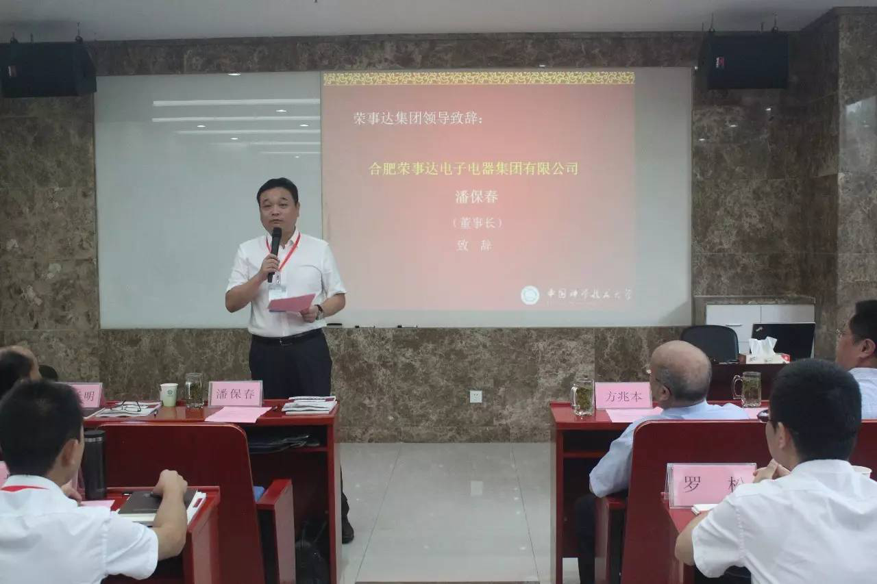 合肥榮事達電子電器集團有限公司董事長(cháng)潘保春代表集團致辭,潘保春董事長(cháng)首先表達了對榮事達人才培養工作給予支持的同仁和老師的衷心感謝。潘董提到,有中國“科技英才的搖籃”之稱(chēng)的中國科學(xué)技術(shù)大學(xué)培養和塑造了眾多的社會(huì )英才;而以“全國大企業(yè)雙創(chuàng )典范”享譽(yù)全國的榮事達,則搭建“智能家居全價(jià)值鏈雙創(chuàng )中心”平臺,面向全社會(huì )免費開(kāi)放大企業(yè)優(yōu)勢資源,培養了一大批有責任心、有擔當、富家國情懷的企業(yè)家。本次研修班是中國科大與榮事達集團校企合作的進(jìn)一步深化,希望能共同為祖國大國崛起的道路添磚加瓦。最后,潘董希望同學(xué)們珍惜這次學(xué)習機會(huì ),充分感受科大的科技、人文氣息,嚴格要求,不斷提升,全面展示榮事達人的良好形象與精神風(fēng)貌。