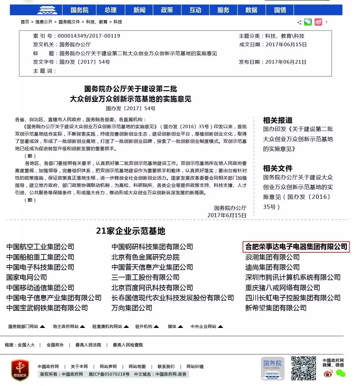 ↑↑↑榮事達成功躋身國務(wù)院第二批“國家雙創(chuàng )示范基地”
