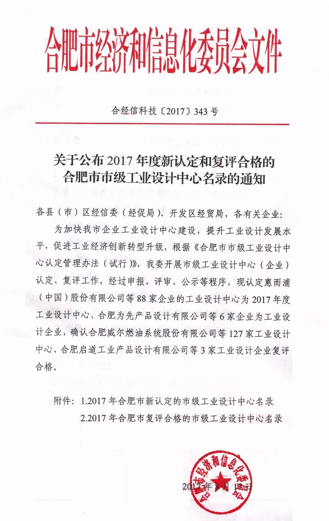 近期,合肥市經(jīng)信委發(fā)布《關(guān)于公布2017年度新認定和復評合格的合肥市市級工業(yè)設計中心名錄的通知》。合肥榮事達電子電器集團有限公司工業(yè)設計中心繼2016年初次獲評市級工業(yè)設計中心后,成功列入復評合格的市級工業(yè)設計中心名錄;同時(shí),集團旗下的合肥榮事達太陽(yáng)能科技有限公司工業(yè)設計中心、安徽品冠工貿有限公司工業(yè)設計中心也成功列入新認定的中心名錄。