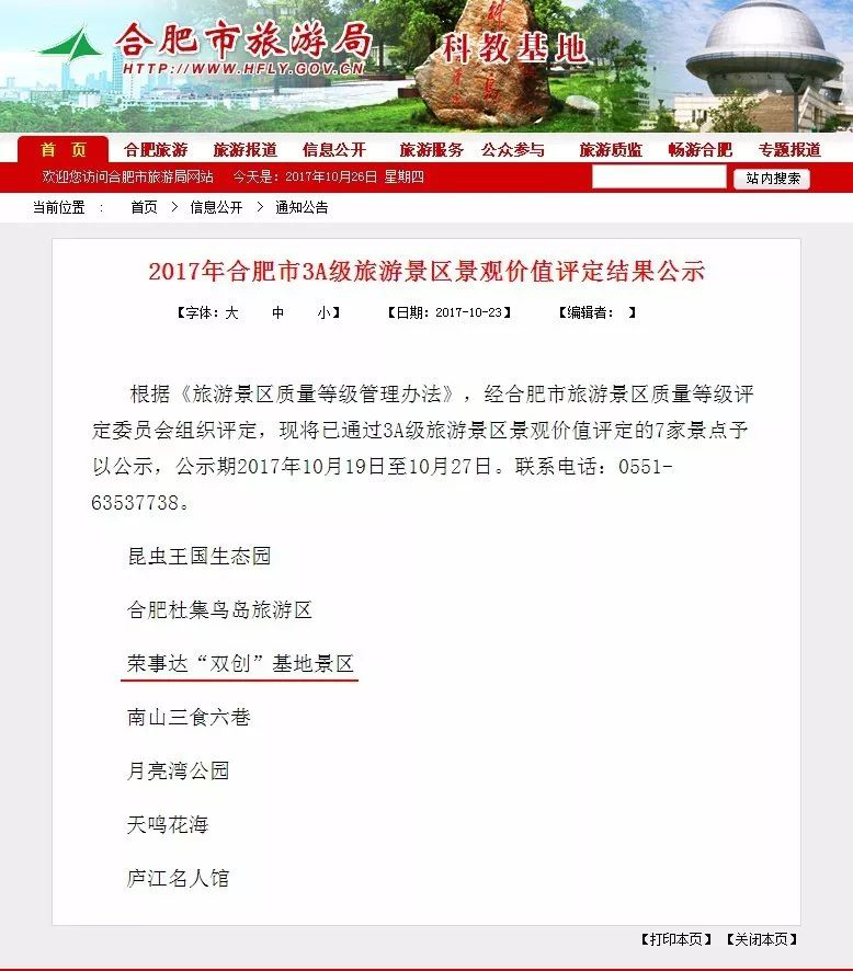 近日,經(jīng)合肥市旅游景區質(zhì)量等級評定委員會(huì )組織評定,榮事達“雙創(chuàng )”基地景區成功通過(guò)3A級旅游景區景觀(guān)價(jià)值評定。