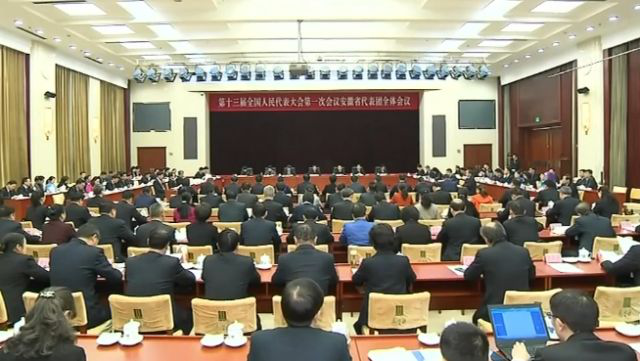 出席十三屆全國人大一次會(huì )議的安徽代表團舉行全體會(huì )議