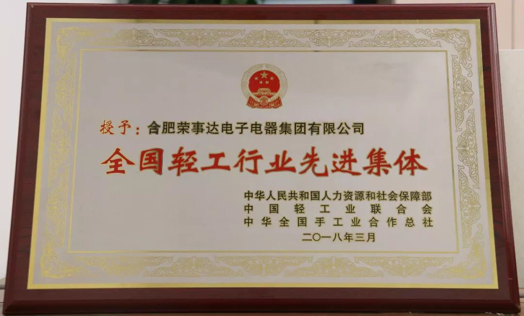 2017年,是榮事達收獲榮譽(yù)和肯定最多的一年。2018年3月16日,榮事達再傳喜訊:我們被人社部、中國輕工業(yè)聯(lián)合會(huì )、及中華全國手工業(yè)合作總社聯(lián)合評為“全國輕工行業(yè)先進(jìn)集體”,成為安徽省四家入圍單位之一,合肥市唯一一家入圍企業(yè)。
