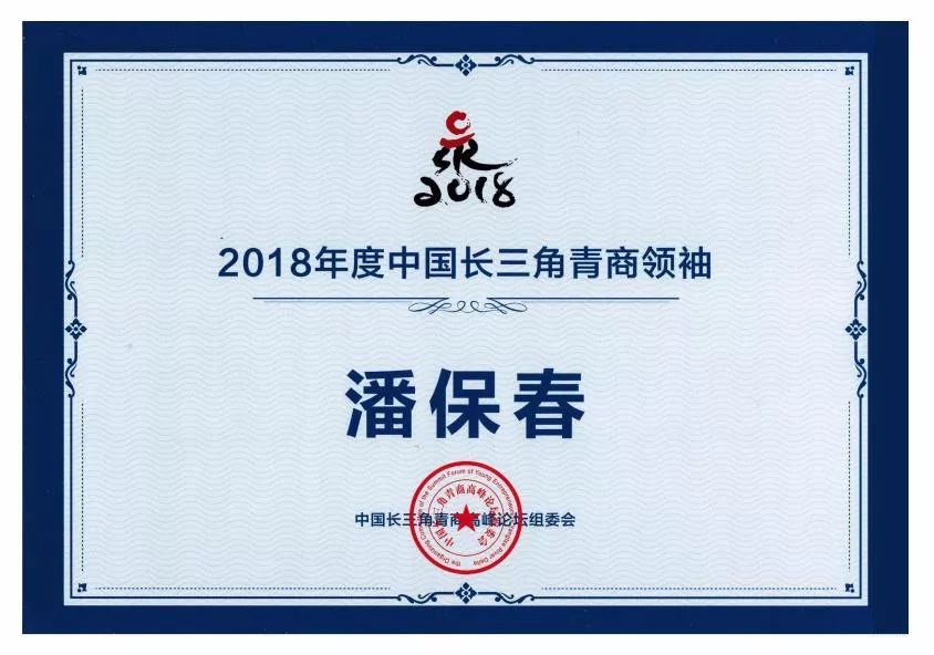 潘保春董事長(cháng)獲評“2018年度長(cháng)三角青商領(lǐng)袖”
