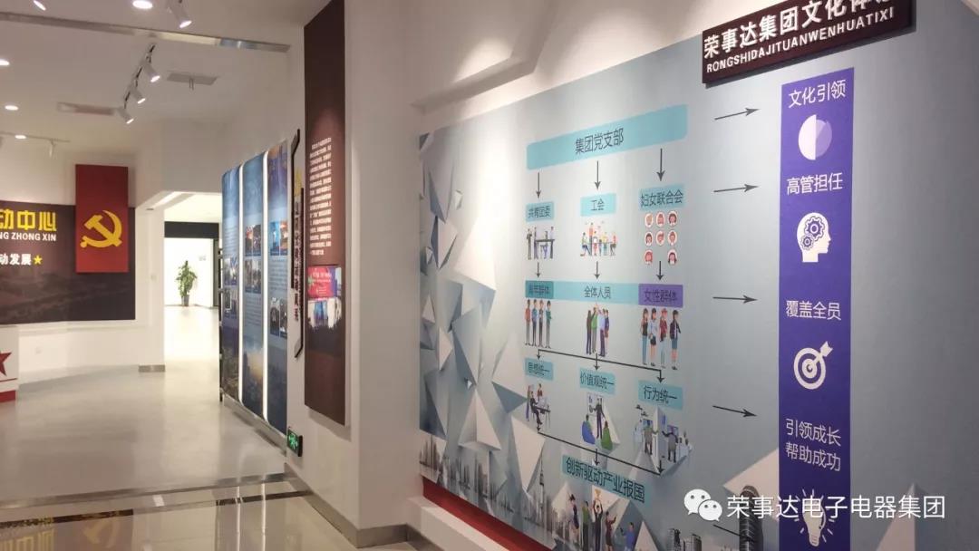 沿著(zhù)階梯,來(lái)到活動(dòng)中心最后一個(gè)展區,遠望未來(lái)、激勵當下。展區里展示了黨的十九大確立的一系列重大論斷、重大決策,展示了榮事達電子電器集團在黨建過(guò)程中堅持廉潔做人做事、踐行社會(huì )主義核心價(jià)值觀(guān)的信念。