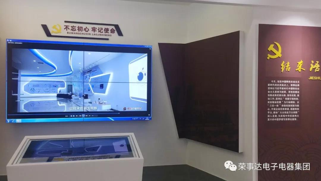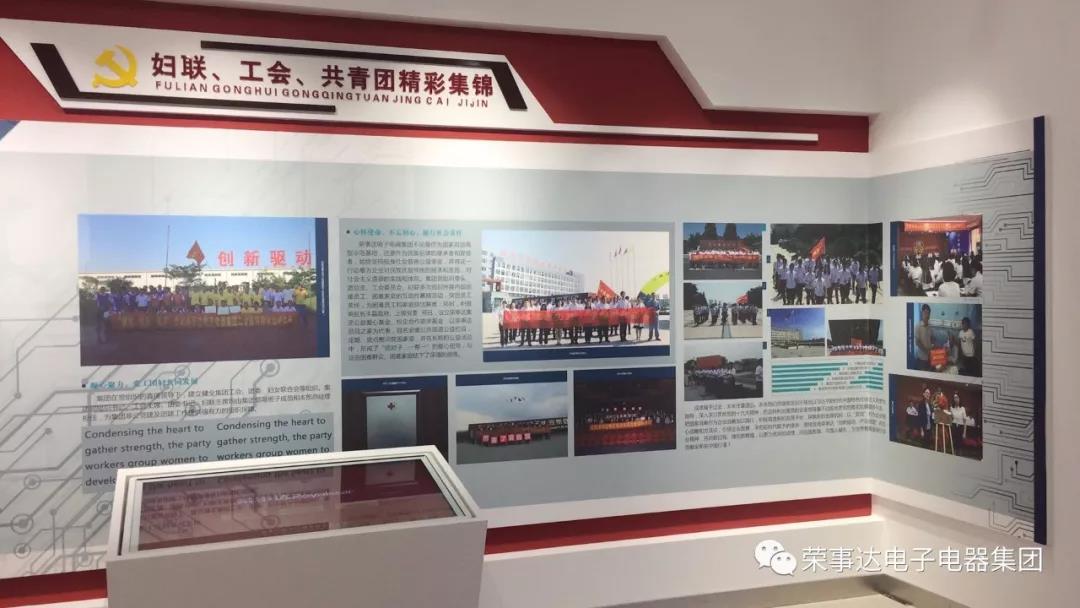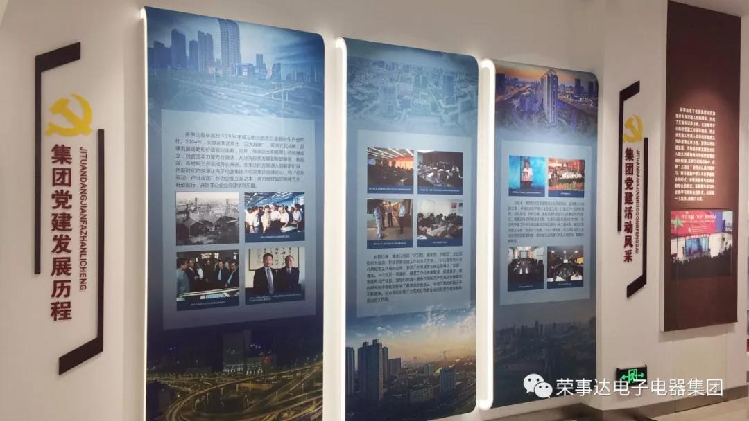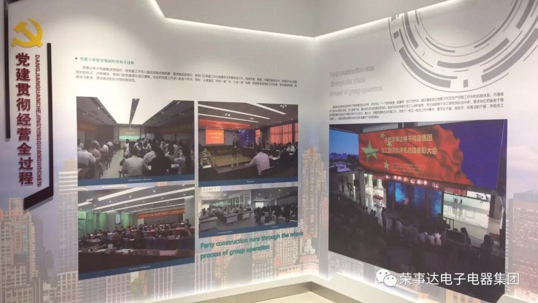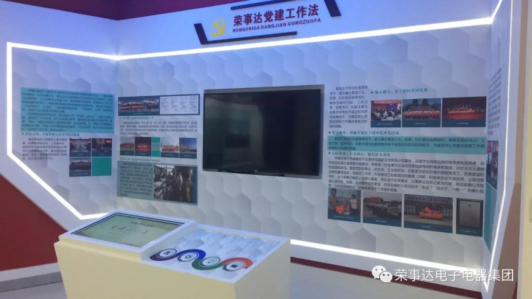 光輝歷史之后,第三個(gè)展區展示的便是當下榮事達的黨建風(fēng)采。本展區通過(guò)藝術(shù)圖文、電子觸摸屏、建筑剪影等形式,從多個(gè)角度詮釋了榮事達豐富多彩的黨建工作——
