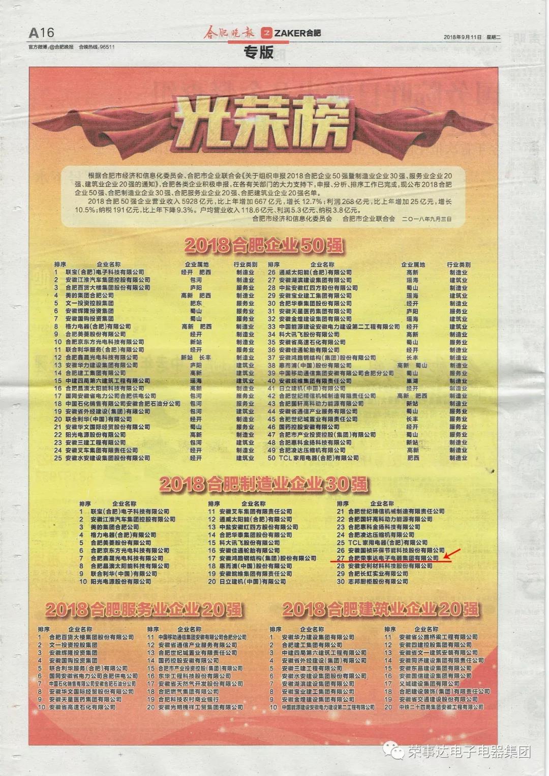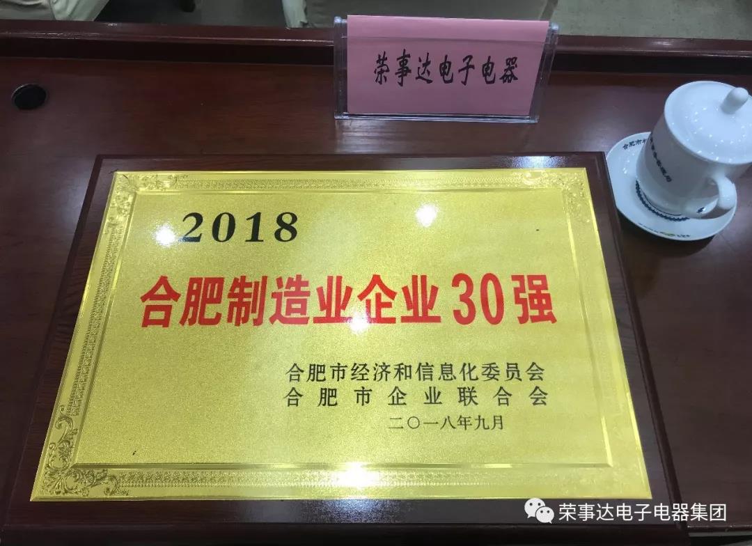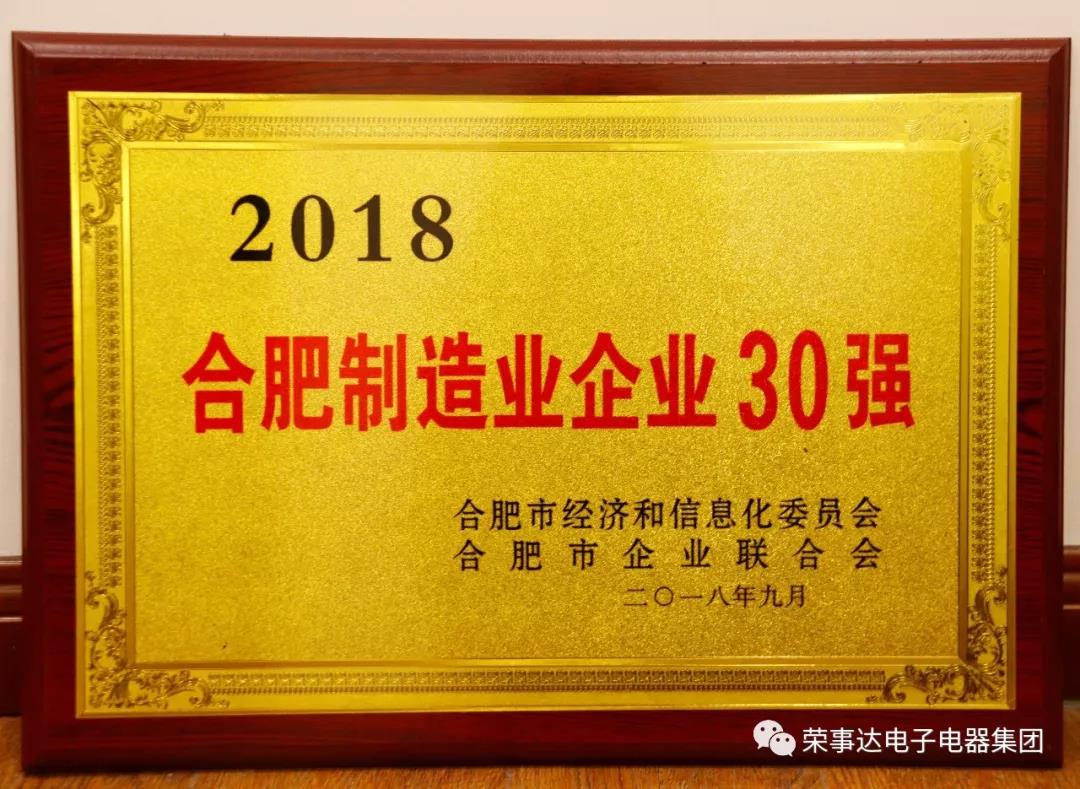 榮事達憑借消費者多年的信任和口碑,榮登2018年合肥制造業(yè)企業(yè)30強榜單!