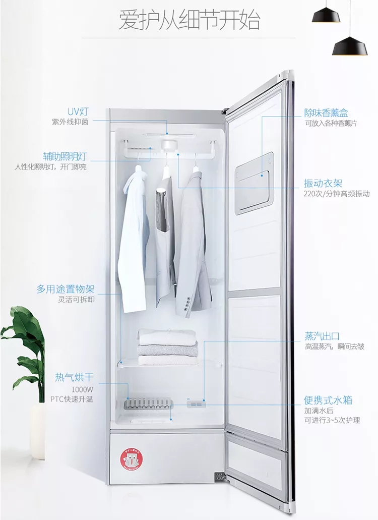 如果你以為榮事達智能衣物護理機僅僅是除味除皺,那就小瞧這臺智能衣護管家了。在56℃的環(huán)境中通過(guò)PTC熱氣對衣物進(jìn)行輕柔烘干的同時(shí),它還可以利用紫外線(xiàn)燈為衣物進(jìn)行殺菌。只需要50分鐘左右的時(shí)間,衣服便可以煥然一新。