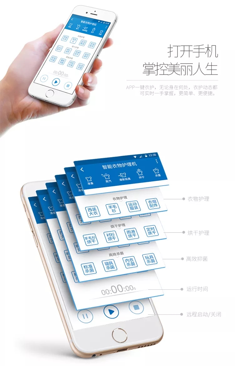 自己沒(méi)時(shí)間護理衣物也不用擔心了,使用專(zhuān)用APP,無(wú)論身處何方打開(kāi)手機,便可聯(lián)動(dòng)家里的護理機,進(jìn)行一鍵衣護,完成對衣物全方位的護理,操作起來(lái)非常方便。